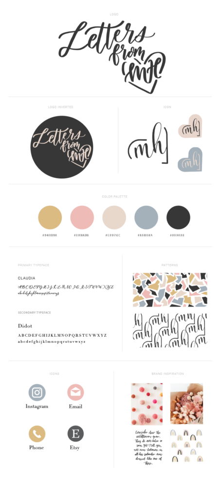 4. Font: I chose Claudia because it looks almost identical to Maegan’s cursive and it can be used in cases where it isn’t practical for her to hand write it. Didot brings an elevated feel to the brand and keeps it grounded.